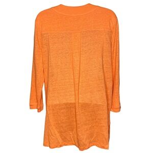 Keywords: Chicos tunic top, Orange linen blend shirt, V neck sequin top, Embellished tunic, Women's size 2 top, 3/4 sleeve tunic, Sparkly top, Boho chic shirt, Beach cover up, Resort wear, Lightweight tunic, Summer fashion, Casual elegant, Designer tunic