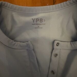 Abercrombie YBP blue tank top + biker shorts. Sleeveless design, button detail on top. Perfect for workouts.