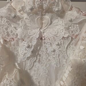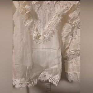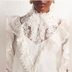 Zimmermann Crush Heart Trim Blouse Show Stoper Cream Lace Detail Top Sz M