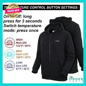 Brand new, never worn, and in flawless condition — this innovative heated hoodie delivers cozy, adjustable warmth perfect for winter outdoor activities, everyday wear, travel, or cold weather sports. The fit is relaxed and comfortable, featuring soft, breathable fabric with advanced heating technology.