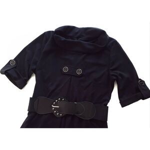 PAPILLON cowl neck belted black short tab sleeve box pleat dress Size Medium NEW