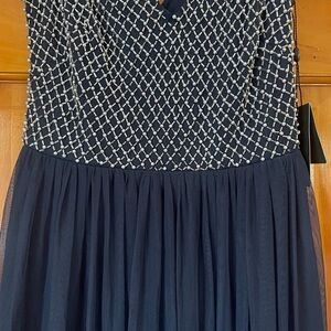 Name of item: Adrianna Papell Anthropologie Bryce Navy Tulle Maxi Dress Gown Beaded Sz 0 NWT