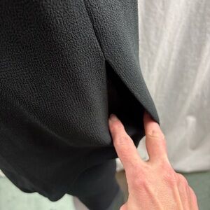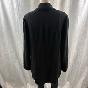 Hook closure at front, subtle pockets (side hidden slits). Similar to the Chevlier blazer.