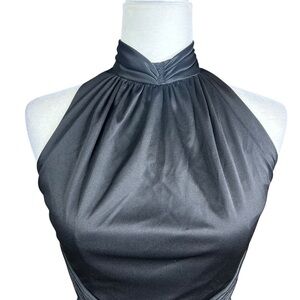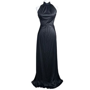 Vintage 80's Black Halter Gown. No size tag/care tag. Feels like a polyester blend, flows very nicely