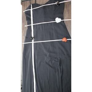 Abercrombie & Fitch satin maxi dress black slit sweetheart cami Medium Tall, in good pre-owned condition: no holes, no stains, minor wear, has been recently cleaned, may be stale from storage. Marked as a women's medium tall, measurements are taken while laying flat and are approximate: (see photos)