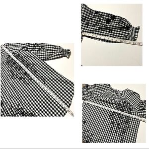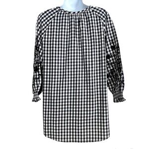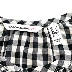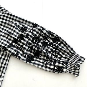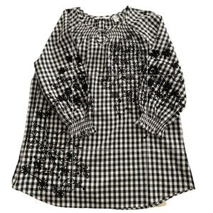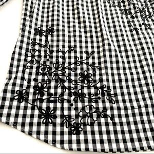 Isaac Mizrahi Black White Gingham Boho Floral Embroidery Top Blouse Size 8