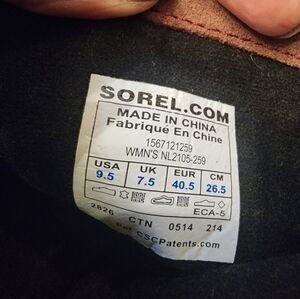 EUC Sorel boots in burgundy/brown. Waterproof full grain leather upper with brushed suede and colorful woven paneling, molded EVA footbed, rubber outsole. Adjustable buckle strap and stacked heel. Pull on style. US 9.5 but I feel like they fit more like a 9. Worn twice.
