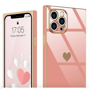 Compatible with iPhone 12 Pro Case Rectangle Cute Plating Gold Luxury Love Heart Phone Case for Women Girls Shockproof Raised Full Camera Lens Protection Bumper Cover for iPhone 12 Pro, Pink