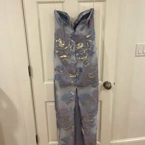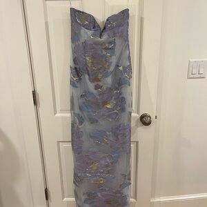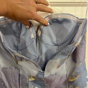 Step out in style with this elegant strapless dress featuring a beautiful floral pattern. Perfect for any special occasion.