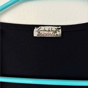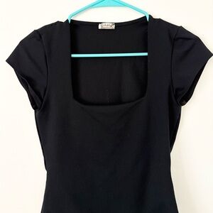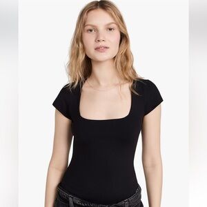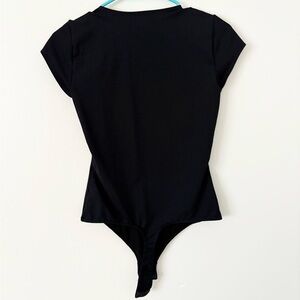 Free People Black Square Eyes Short Sleeve Thong Bodysuit Size Small