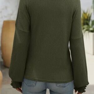Stay cozy and stylish with this olive green ribbed knit too. The material is SUPER soft and comfortable. Easy to dress up or down. All brand new with tags.