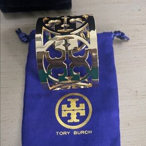 Tory Burch Miller cut-out logo gold cuff bracelet