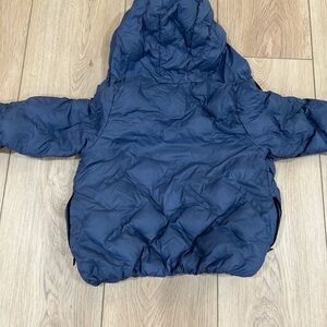 Stylish and cozy puffer jacket. Ideal for cold weather. Features a hood and zip closure. Size: 4-5 years