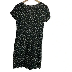 Old Navy Black & Yellow Floral Short Sleeve Woven Swing Dress Womens Size XS