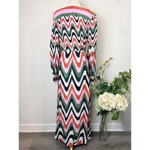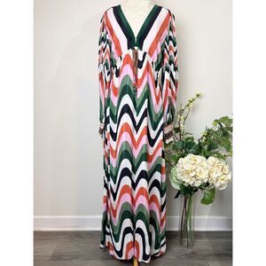 FARM Rio Wave Gradient Maxi Dress Long Sleeve Drawstring Waist Multicolor Size M NWT