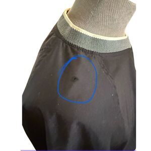 Small hole on shoulder - see photo. Barely noticeable.