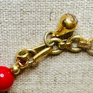 Vintage Monet Red Acrylic Ball Bead Necklace Gold Tone and Dome Clip Earrings