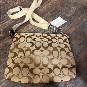 Stylish Coach crossbody with signature pattern. Features a secure front pocket and adjustable strap. Perfect for daily use.