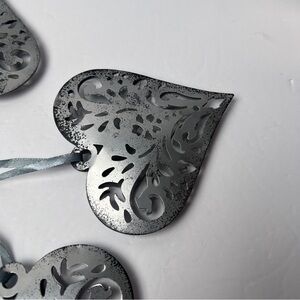 Set of 5 Metal Silver Colored Decorative Heart Ornaments