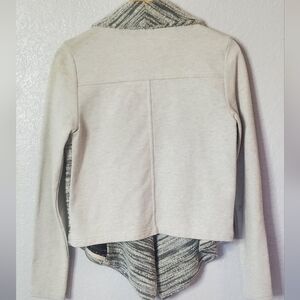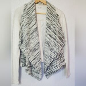 LOFT Cream & Gray Neutral Open Front Fitted Woven Knit Cardigan Sweater Sz Small