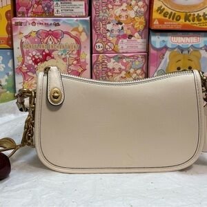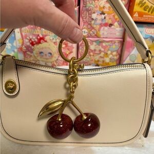 Chic cream shoulder bag by Coach. Features elegant gold hardware and unique charm details. Itโs a special edition called โThe Swingerโ to commemorate the iconic style. Comes with $99 authentic Coach Cherries ๐ keychain. Itโs a gorgeous statement with the cherries! ๐ฅฐ๐๐๐