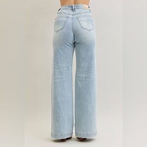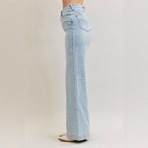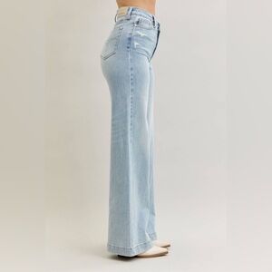 Our HW Retro Wide Criss-Cross WB Mild Destroy jeans are a perfect blend of classic and modern styles. Judy Blue Jeans has crafted these high-rise, wide-leg jeans with a light wash finish, making them ideal for fall/winter day parties. The 81% cotton, 16% polyester, and 3% spandex composition ensures a comfortable fit, while the mild destroy design adds a trendy touch. With a front rise of 10 1/2" and an inseam of 33", these jeans will make a stylish addition to your wardrobe.