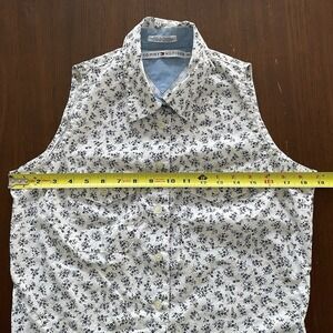 Tommy Hilfiger Women's Sleeveless Popover Top Size 10 White Black Floral Collar