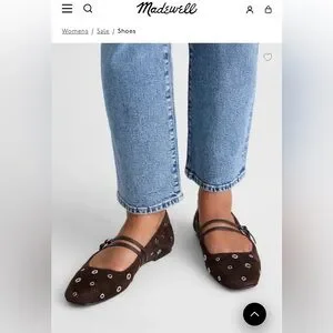 Madewell Double Strap Ballet Flats Brown Flats with Grommet Detail Size 8 NWT