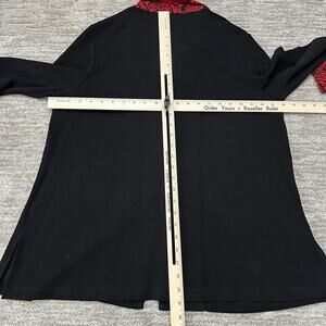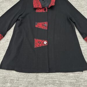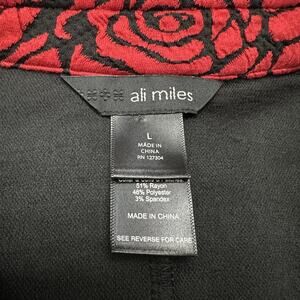 Ali Miles Jacket Womens Large Black Red Rose Trim 3/4 Sleeve Button Front
