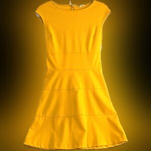 This is the perfect fall dress. wear it on its own with flats, or throw on a jean jacket and boots for an easy casual day or night time look. it is 32 in from pit to pit and 34 in from shoulder to hem. it is structured but has a wonderful stretch to it it's an absolutely perfect dress