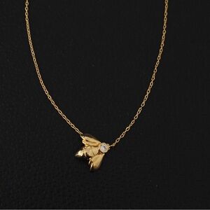 It features a polished gold-toned pendant shaped like a bee, with detailed wing textures. A small, clear, faceted gemstone is set at the ""head"" of the bee, adding subtle sparkle.