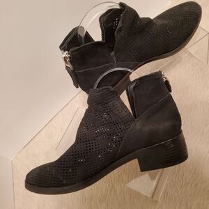 Dolce Vita Women's Booties Size 8.5 Black Suede Laser Cut Slip-On Ankle Boots