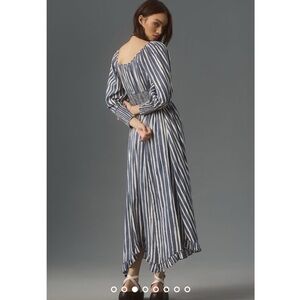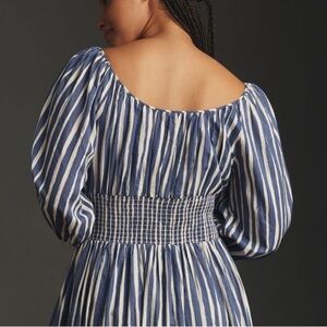 ANTHROPOLOGIE Smocked Stripes Long Sleeve Sweetheart Midi Dress Blue Size M NWT