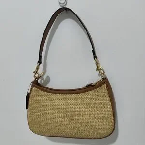 Coach Light Beige Woven Straw Hobo Bag