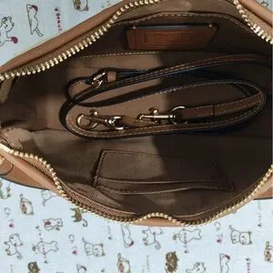 This is a Coach handbag, featuring the brand’s iconic horse-and-carriage logo on the front. It belongs to the popular hobo silhouette, which is casual yet stylish.