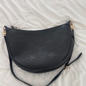 Chic Louis Vuitton shoulder bag in black. Features iconic monogram design. Perfect for everyday elegance.