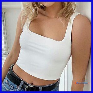 Women's Sleeveless Strappy Tank Square Neck Double Layer Crop Top