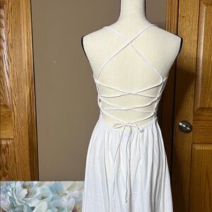 Chic white maxi dress with a flowing silhouette. Perfect for versatile styling. Aline Spaghetti Strap Backless.