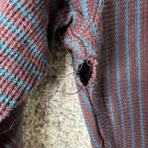 Note: Underarm seam on one side has a torn hole and loose threads.