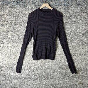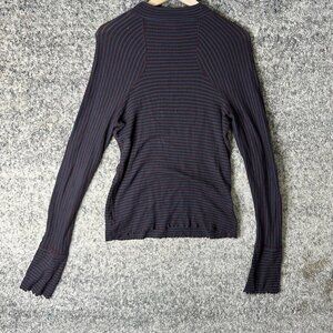 Free People Shirt Womens Large Purple Blue Striped Thermal Long Sleeve Stretch