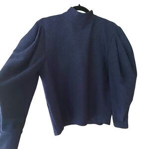 PatBo mock neck sweater sparkly lurex navy turtleneck knit top blouson sleeve M