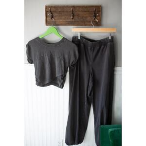 Effortlessly comfy, this set is easy to throw on before or after workouts, featuring a super soft fabrication and perfectly lived-in look.