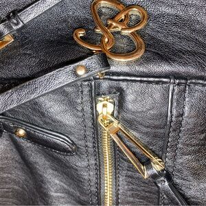 JESSICA SIMPSON Shoulder Bag Handbag Faux Vegan Leather Signature Bag Black Gold