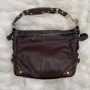 Coach Dark Brown Leather Shoulder Bag with Gold Accents