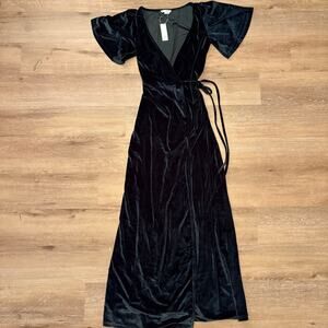 NWT Baltic Born Meghan Velvet Wrap Maxi Dress. Emerald green color. Size XS.
