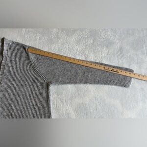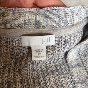 Elegant light gray sweater by J. Jill. Features a textured knit design. 11 % Linen, 41% Cotton.