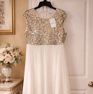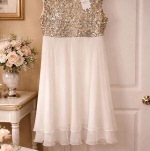 NWT Elegant White & Gold Sequin Dress – Formal / Cocktail