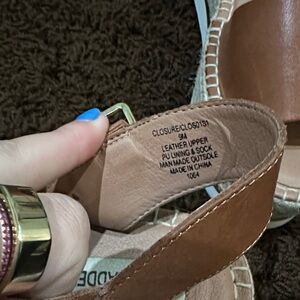 Chic tan espadrille sandals by Steve Madden. Features a stylish platform and open toe design.