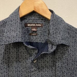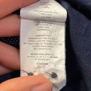 Michael Kors Mens navy blue and white polka dot button down relaxed fit shirt. It’s super cute and in good condition. It’s a size medium.