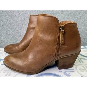Frye Judith Bootie Brown Leather Women's Size 8.5 Zip Ankle Boot Side Zip